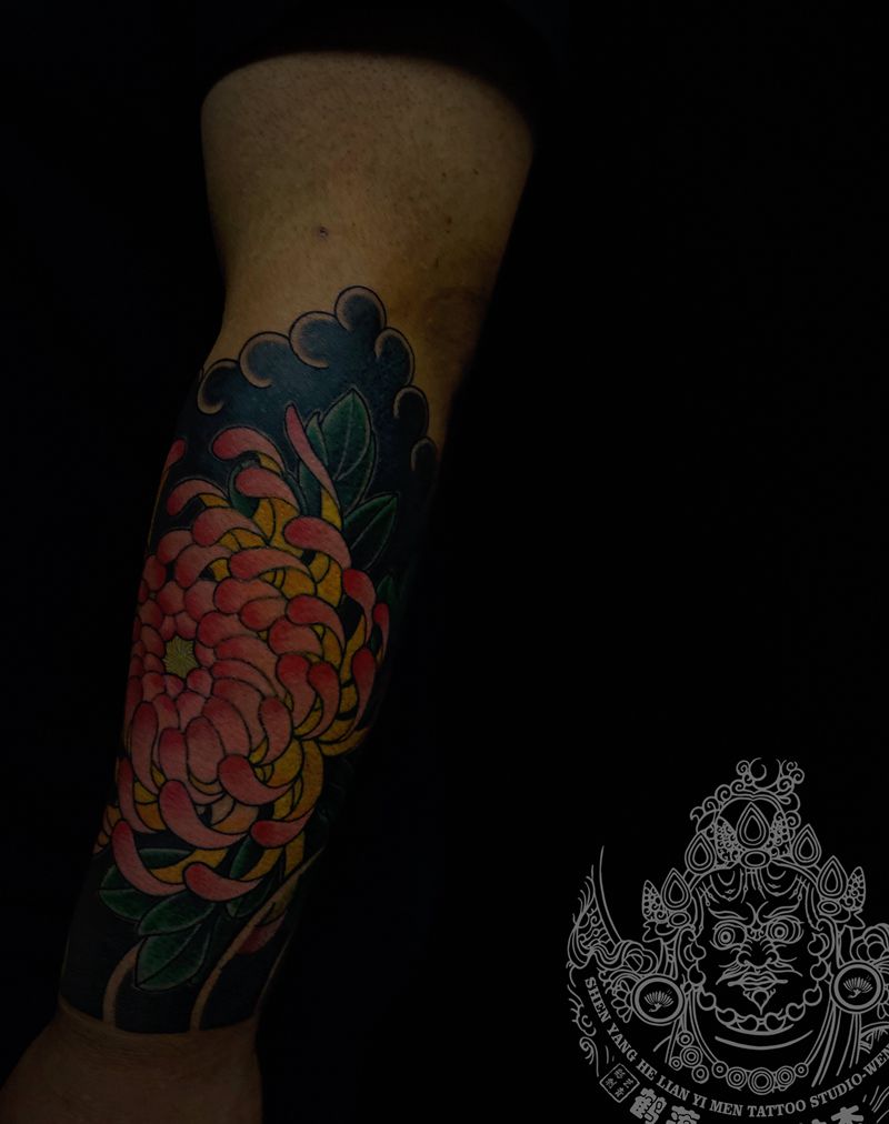 当前位置: 首页 >辽宁省沈阳市纹身店-沈阳彩艺刺青纹身图案>小臂菊花纹身图片_手臂老传统纹身图案