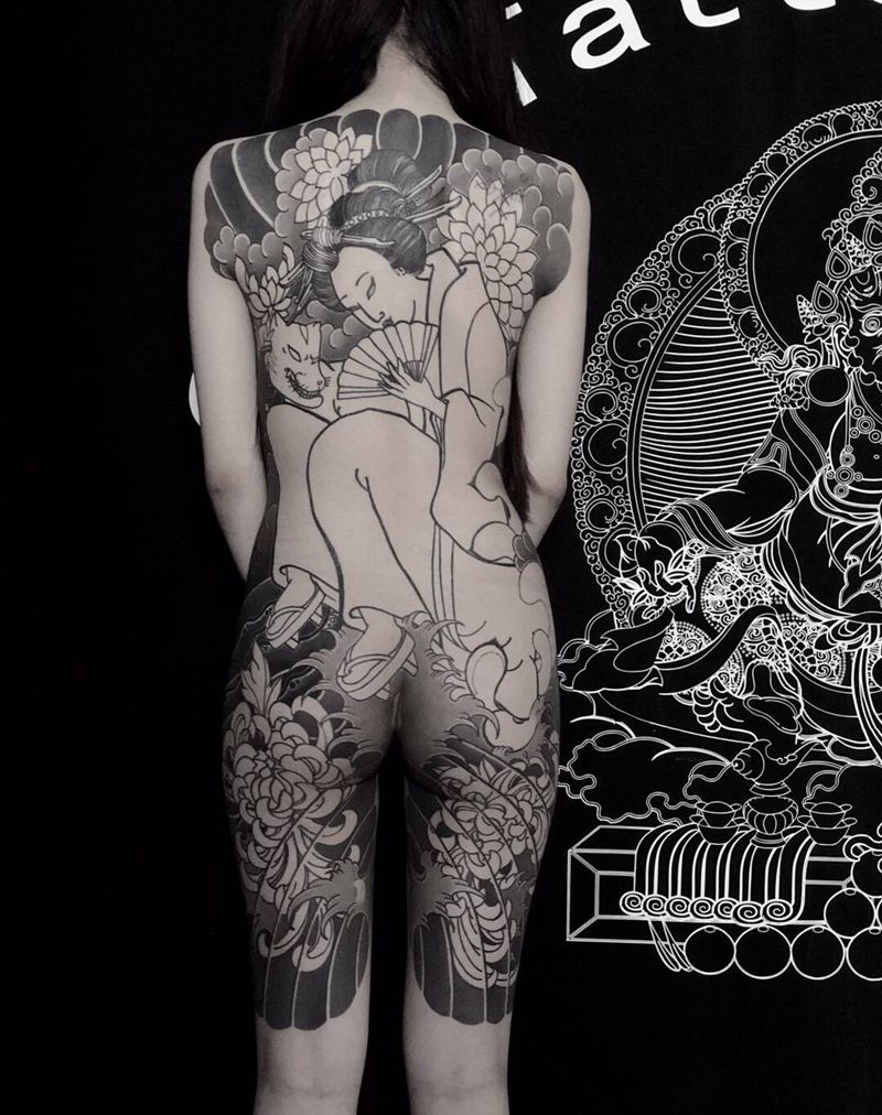 • 黑灰满背纹身图案