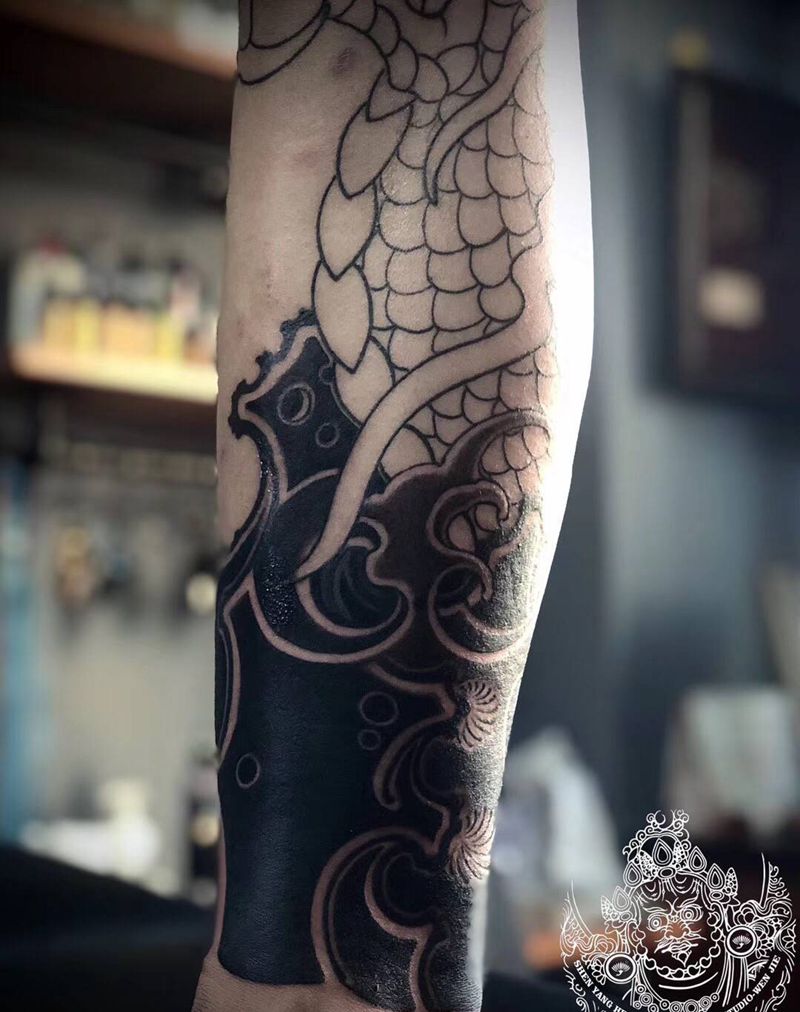 • T网红王老大花腿龙纹身图片_腿部新传统纹身图案