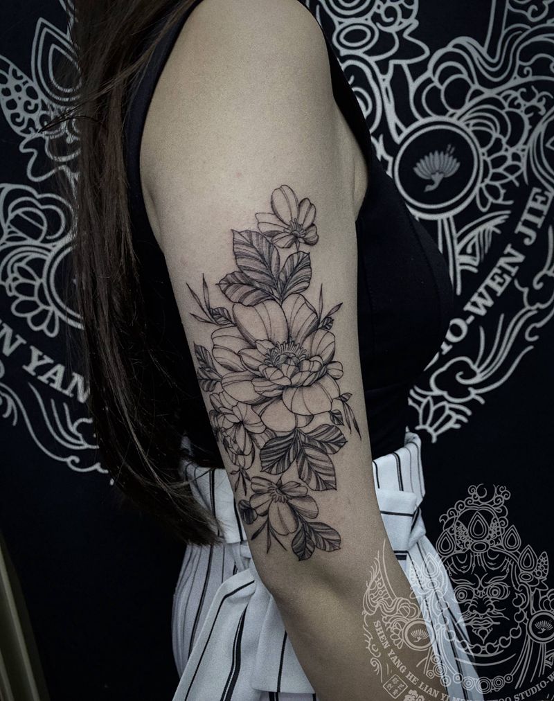 • 女性大花胸纹身_43张霸气漂亮的女性大花胸纹身图案作品