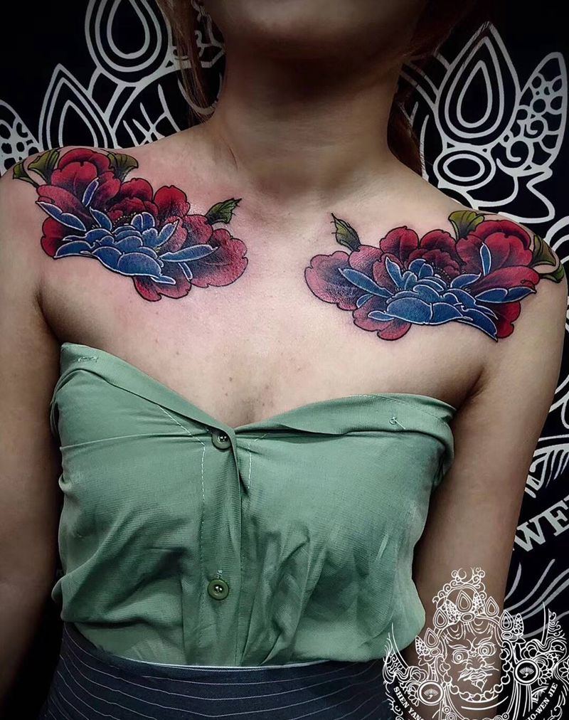 • 女性大花胸纹身_43张霸气漂亮的女性大花胸纹身图案作品