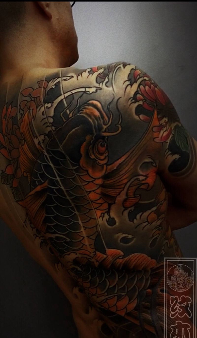 黑灰满背纹身图案