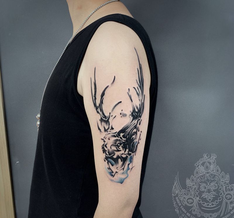 • 纹身吧推荐的披肩图腾半胛纹身图案作品展示