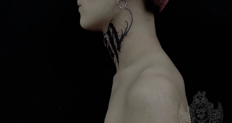 当前位置: 首页 >辽宁省沈阳市纹身店-沈阳彩艺刺青纹身图案>花体字纹身图片_颈部点刺图腾纹身图案