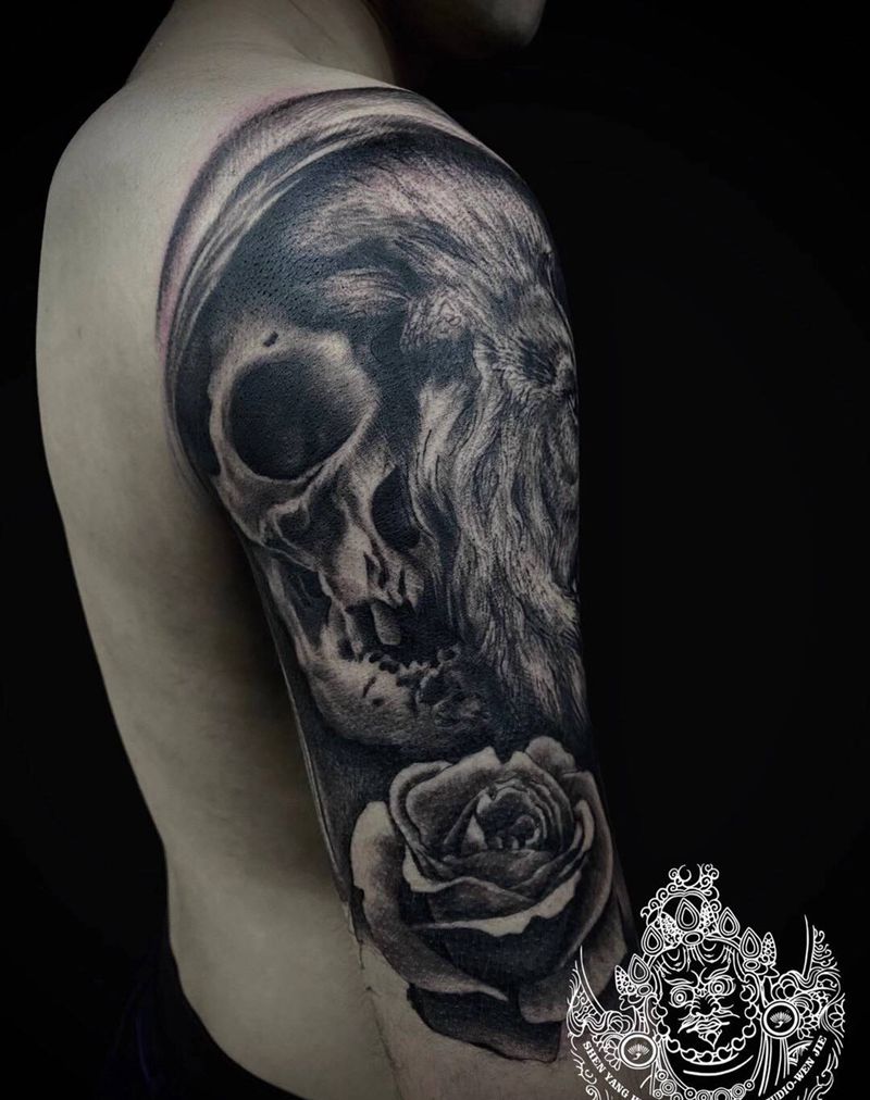 当前位置: 首页 >辽宁省沈阳市纹身店-沈阳彩艺刺青纹身图案>欧美黑灰狮子纹身图片_手臂欧美写实纹身图案