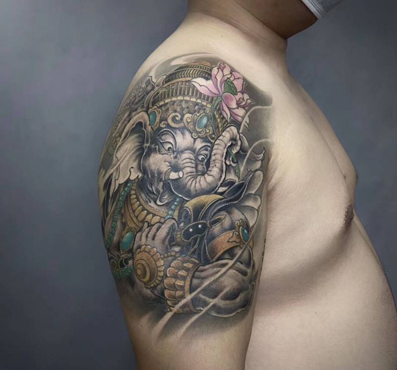 当前位置: 首页 >辽宁省沈阳市纹身店-沈阳彩艺刺青纹身图案>象纹身图片_手臂新传统纹身图案