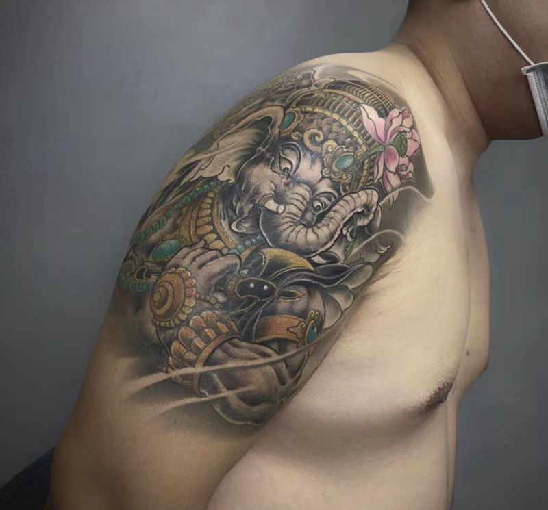 当前位置: 首页 >辽宁省沈阳市纹身店-沈阳彩艺刺青纹身图案>象纹身图片_手臂新传统纹身图案