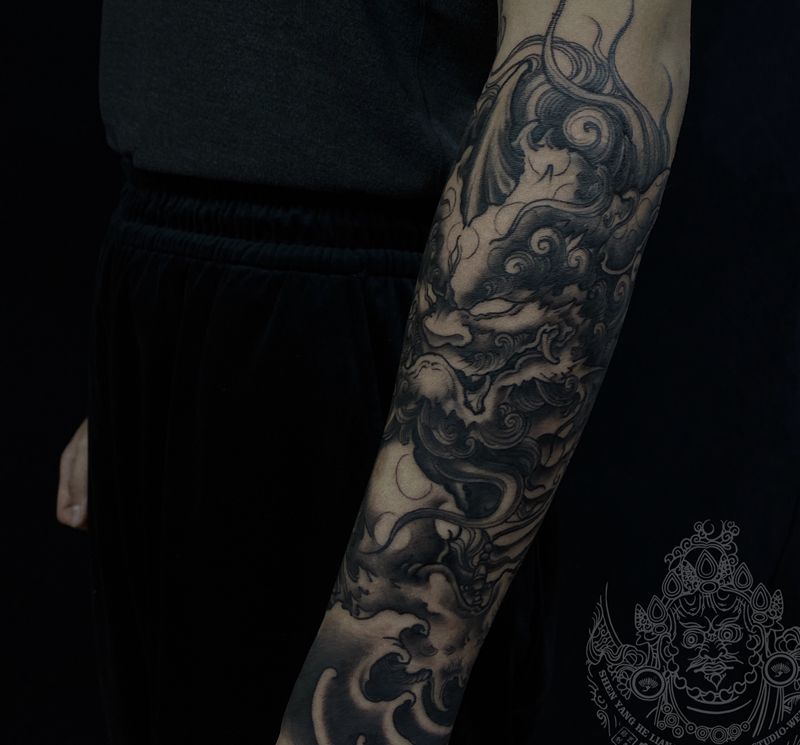当前位置: 首页 >辽宁省沈阳市纹身店-沈阳彩艺刺青纹身图案>唐狮纹身图片_手臂新传统纹身图案
