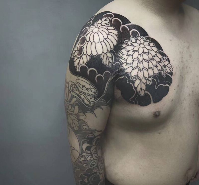 • 女性大花胸纹身_43张霸气漂亮的女性大花胸纹身图案作品