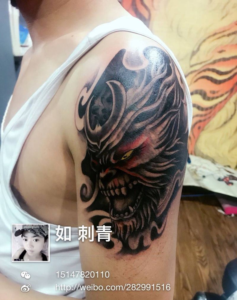• 纹身吧推荐的披肩图腾半胛纹身图案作品展示