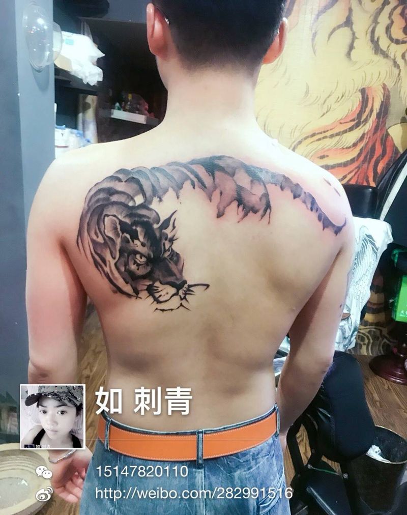 当前位置: 首页 >内蒙古巴彦淖尔市纹身店-内蒙古如 刺青纹身图案>水墨老虎纹身图片