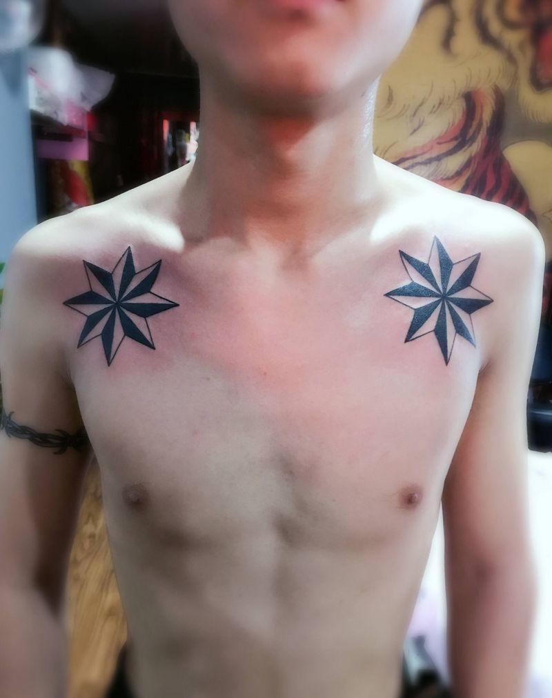 八角形纹身图片_胸部纹身图案