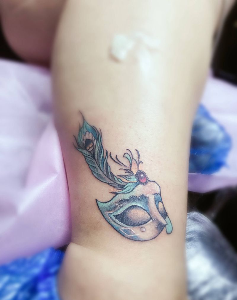 面具纹身图片_腿部纹身图案