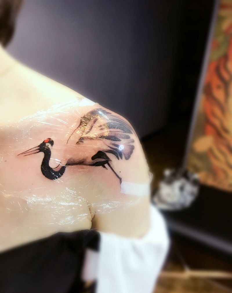 鹤纹身图片_肩部纹身图案