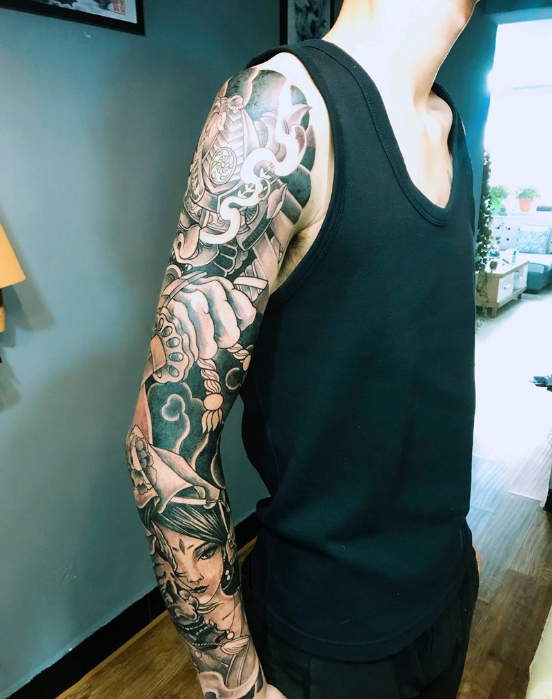 当前位置: 首页 >内蒙古巴彦淖尔市纹身店-内蒙古如 刺青纹身图案>武士艺妓花臂纹身图片_手臂纹身图案