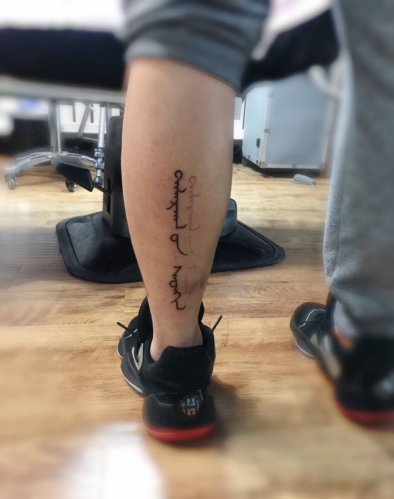 蒙文纹身图片_腿部纹身图案