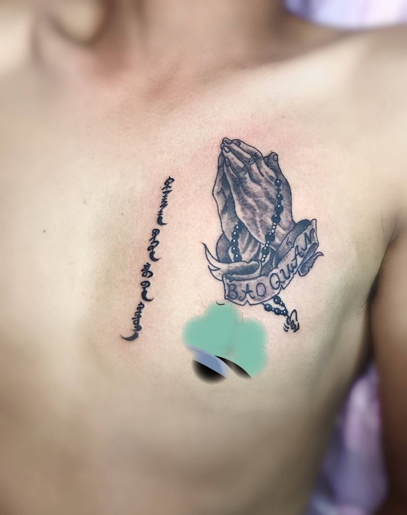 当前位置: 首页 >内蒙古巴彦淖尔市纹身店-内蒙古如 刺青纹身图案>祈祷之手纹身图片_胸部纹身图案