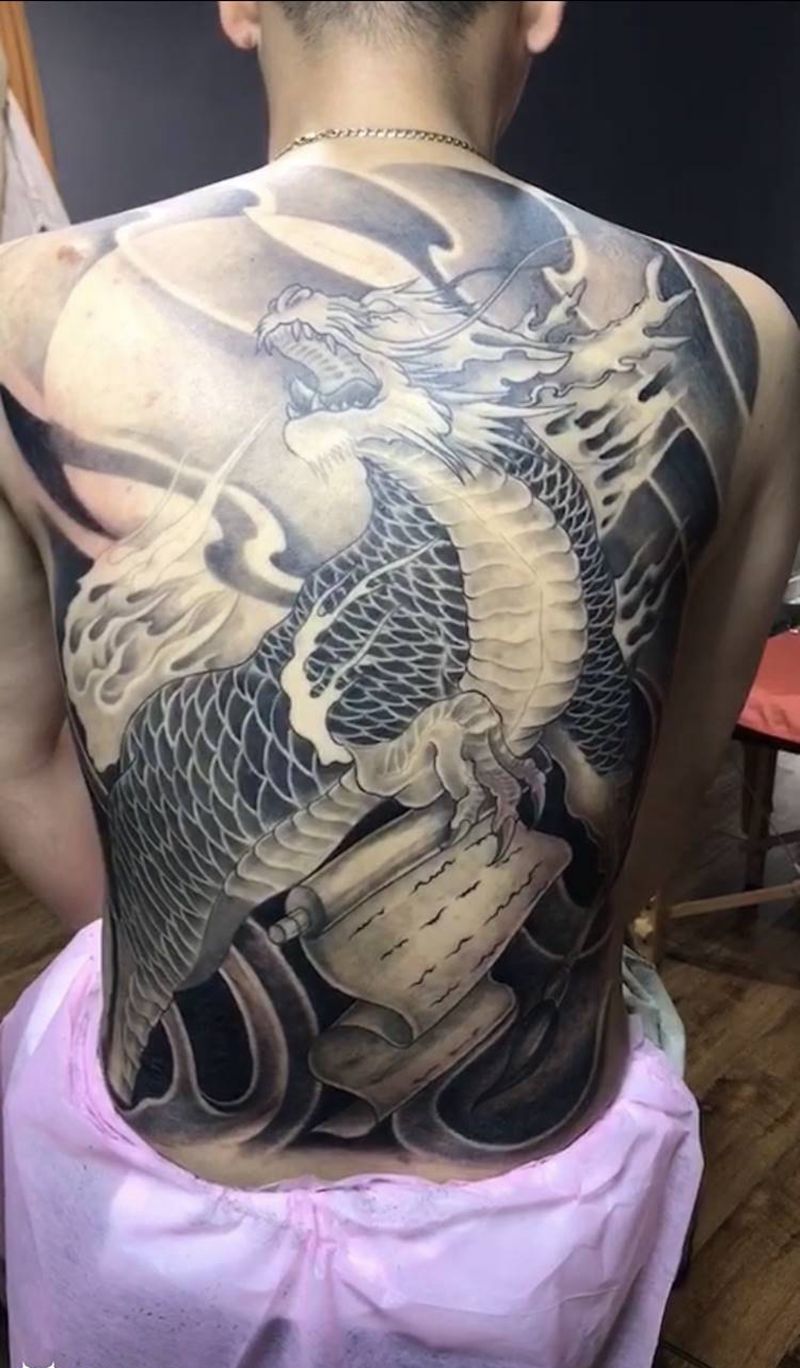 • T云龙九郎纹身图片_背部老传统云龙九郎纹身图案