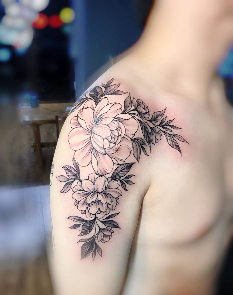• 女性大花胸纹身_43张霸气漂亮的女性大花胸纹身图案作品