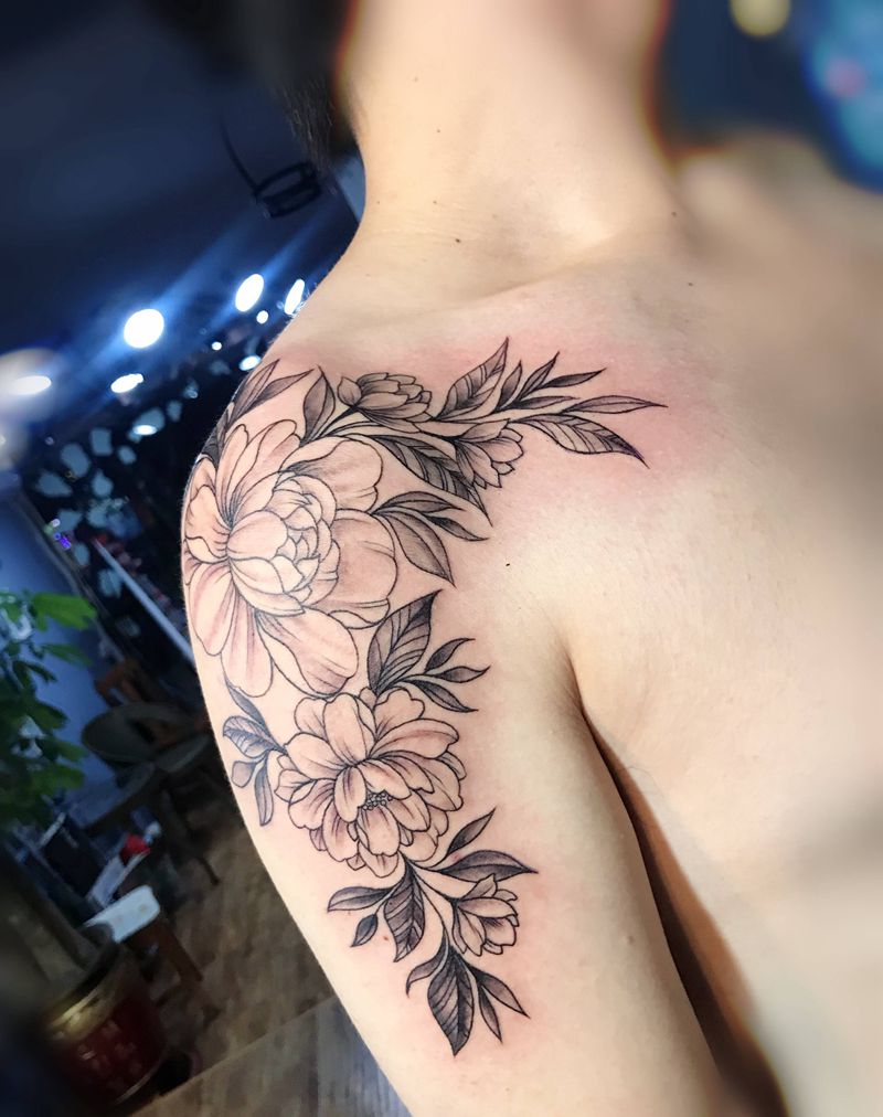 • 女性大花胸纹身_43张霸气漂亮的女性大花胸纹身图案作品