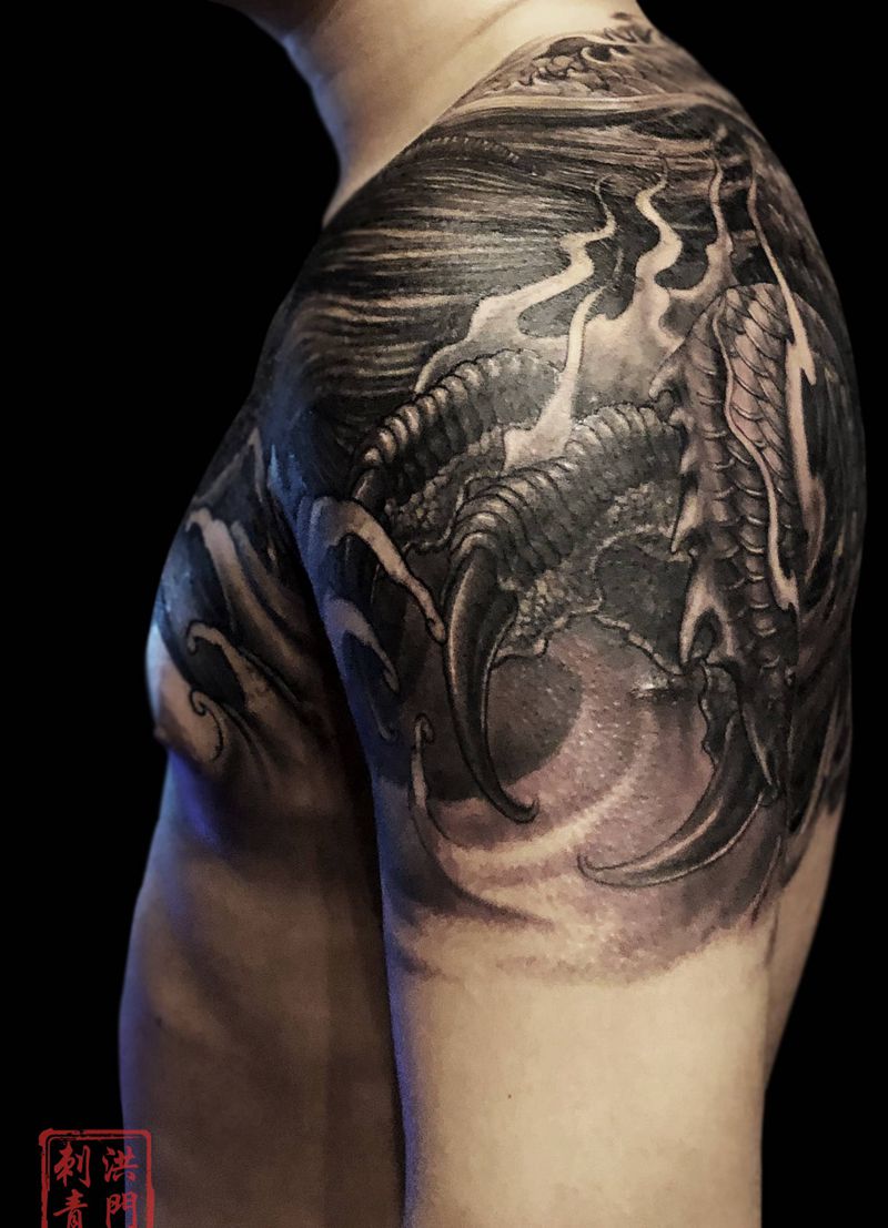 黑灰满背纹身图案