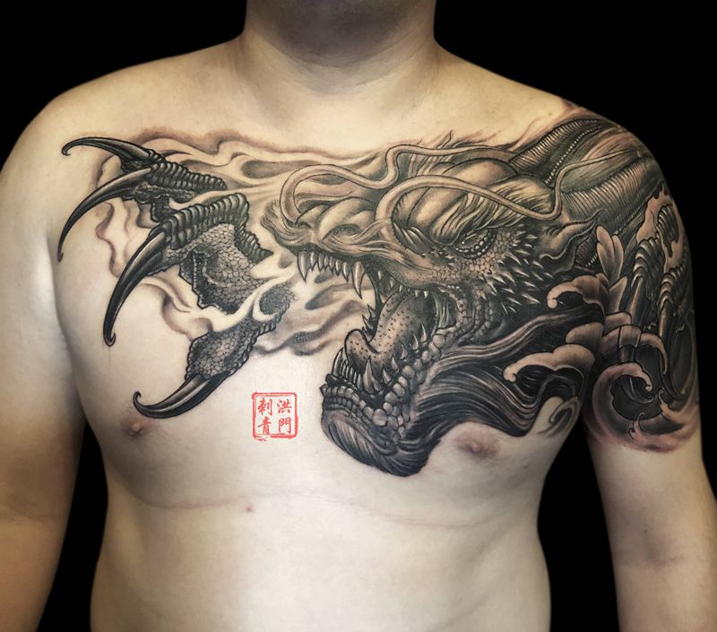 黑灰满背纹身图案