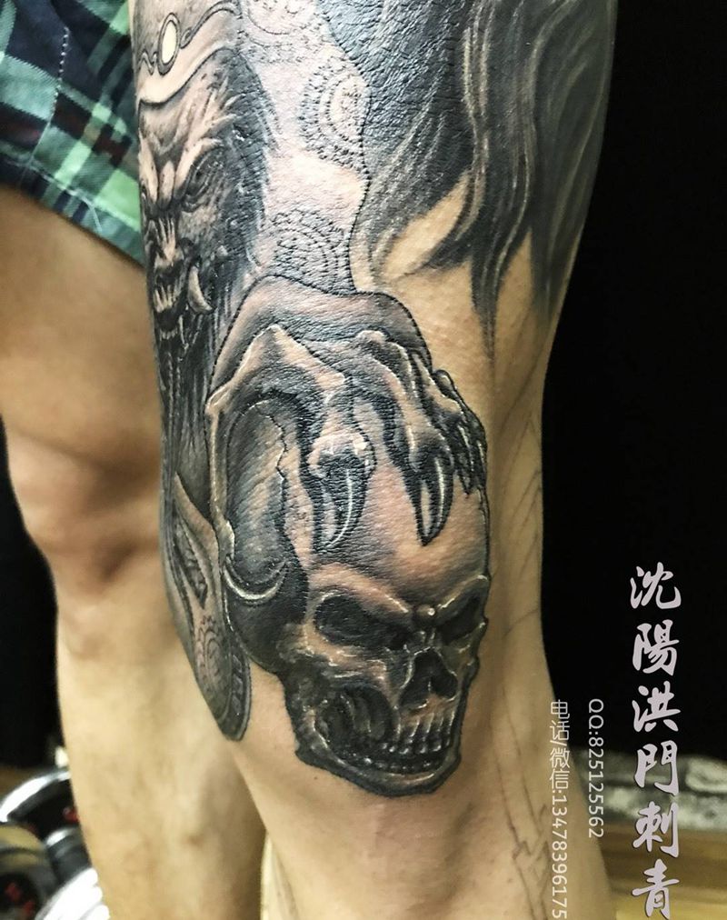 当前位置: 首页 >辽宁省沈阳市纹身店-沈阳洪門刺青纹身图案>阴曹地府纹身图片_腿部臀部传统习俗写实人物鬼神原创纹身图案