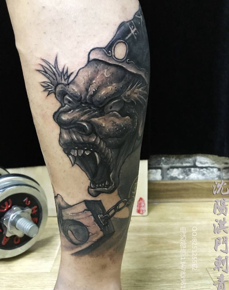 • T网红王老大花腿龙纹身图片_腿部新传统纹身图案