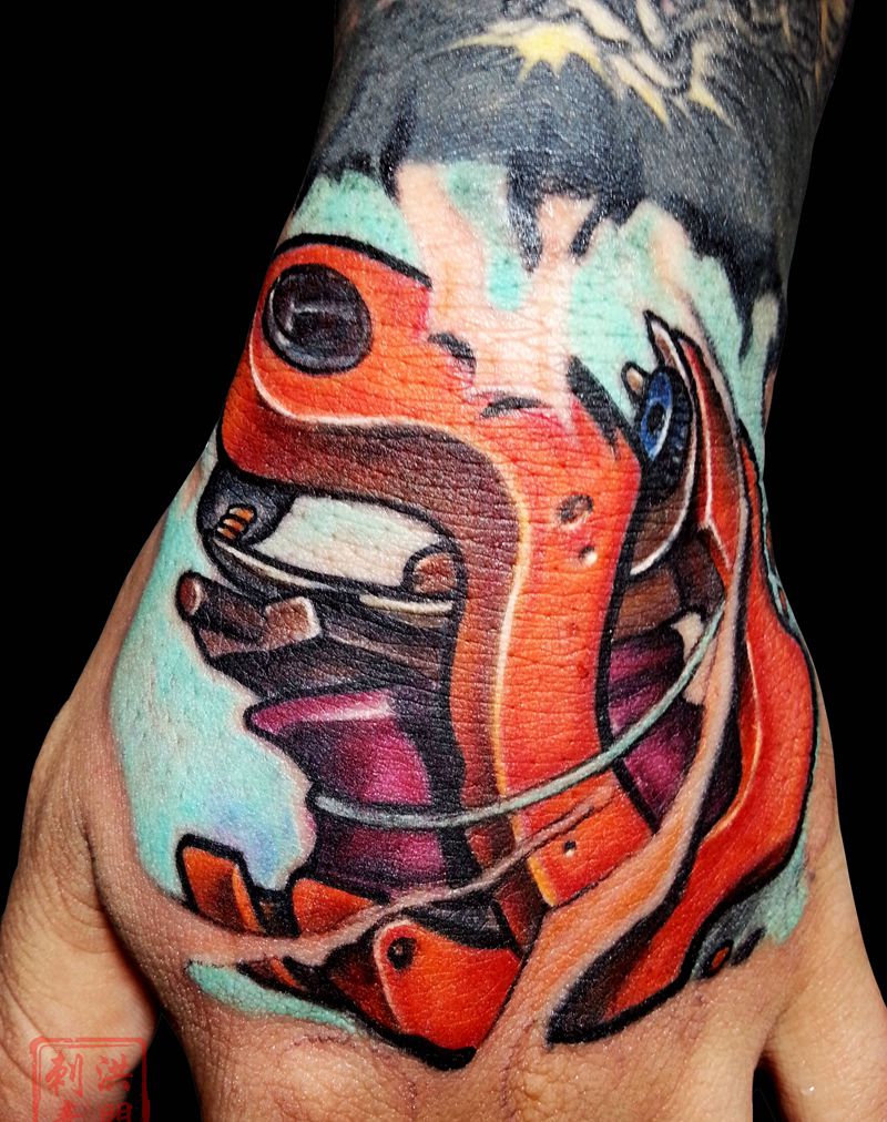 当前位置: 首页 >辽宁省沈阳市纹身店-沈阳洪門刺青纹身图案>纹身机纹身图片_手部手臂欧美写实New School同城彩色机纹身图案