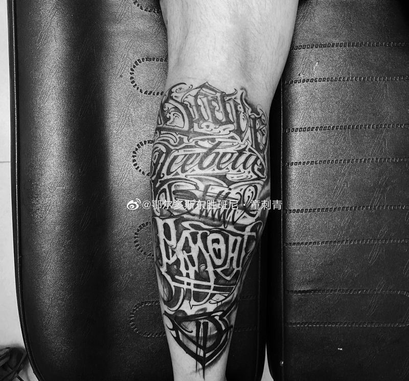 当前位置: 首页 >内蒙古鄂尔多斯市纹身店-班尼刺青工作室纹身图案>花体字纹身图片_腿部纹身图案