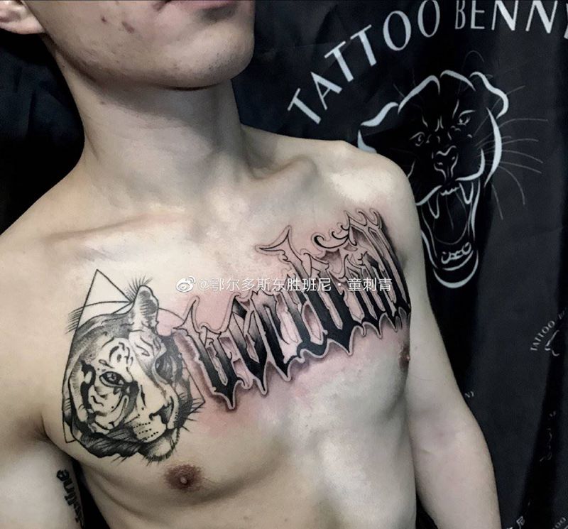 当前位置: 首页 >内蒙古鄂尔多斯市纹身店-班尼刺青工作室纹身图案>花体字纹身图片_胸部纹身图案
