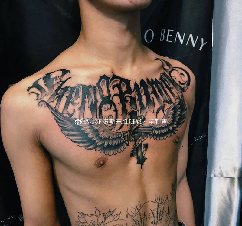 当前位置: 首页 >内蒙古鄂尔多斯市纹身店-班尼刺青工作室纹身图案>花体字纹身图片_胸部纹身图案