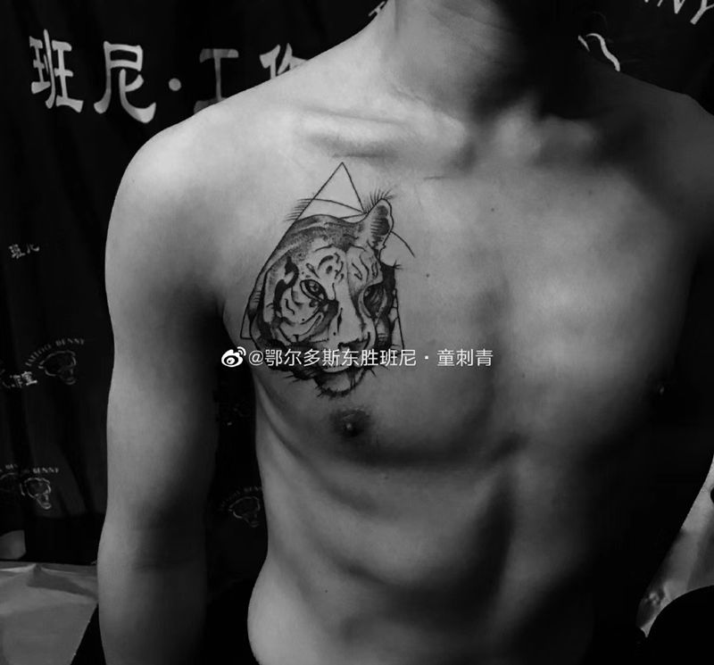 当前位置: 首页 >内蒙古鄂尔多斯市纹身店-班尼刺青工作室纹身图案>几何虎头纹身图片_胸部纹身图案