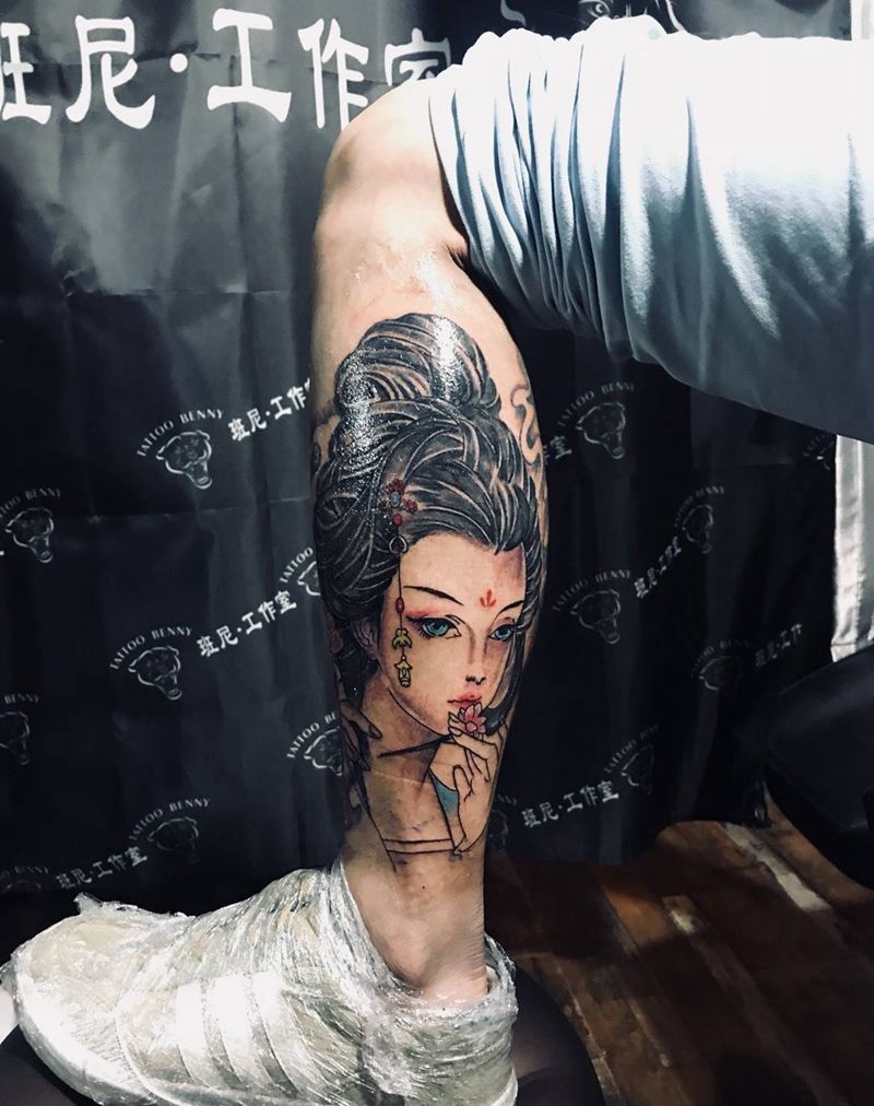 当前位置: 首页 >内蒙古鄂尔多斯市纹身店-班尼刺青工作室纹身图案>艺妓纹身图片