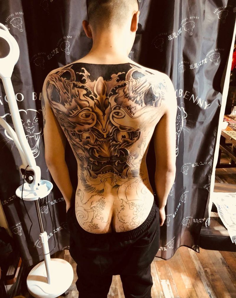 黑灰满背纹身图案