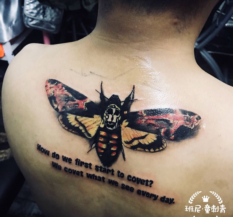 沉默的羔羊纹身图片_背部欧美写实纹身图案