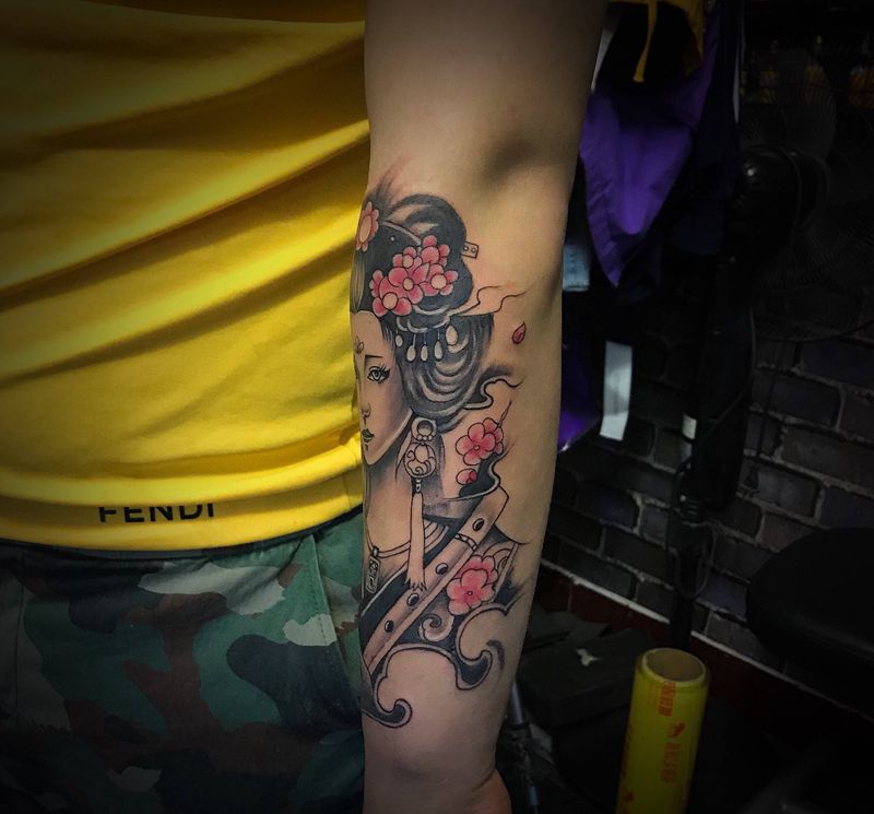 当前位置: 首页 >内蒙古鄂尔多斯市纹身店-班尼刺青工作室纹身图案>艺妓纹身图片_手臂老传统纹身图案