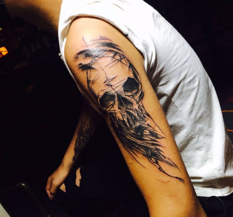 当前位置: 首页 >内蒙古巴彦淖尔市纹身店-一祈纹画纹身图案>骷髅纹身图片