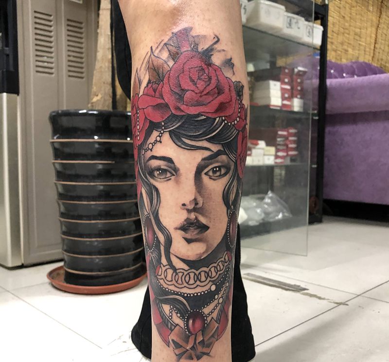 • T网红王老大花腿龙纹身图片_腿部新传统纹身图案