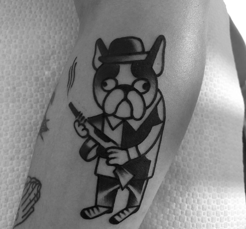 • T包小腿吹火男+阿多福纹身图片_腿部老传统新传统吹火男阿