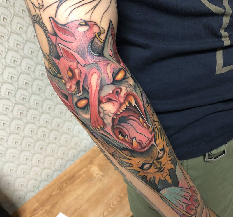 小臂斯芬克斯纹身图片_手臂新传统New School纹身图案
