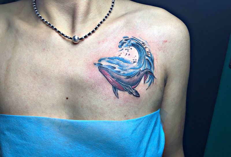 当前位置: 首页 >内蒙古鄂尔多斯市纹身店-玄沐刺青纹身图案>鲸鱼纹身图片_胸部纹身图案