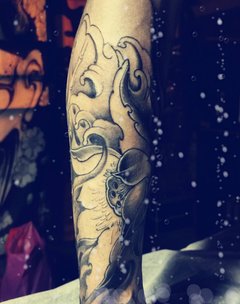 • T网红王老大花腿龙纹身图片_腿部新传统纹身图案