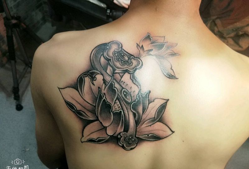当前位置: 首页 >内蒙古乌兰察布市纹身店-匠一刺青纹身图案>荷花如意纹身图片