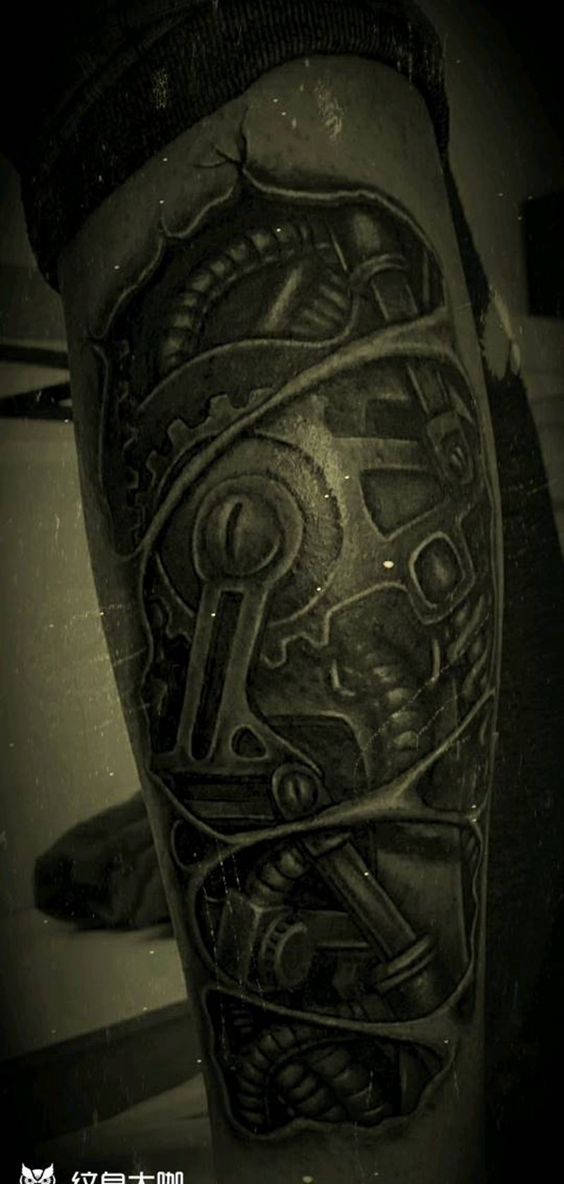 机械腿纹身图片_腿部欧美写实纹身图案
