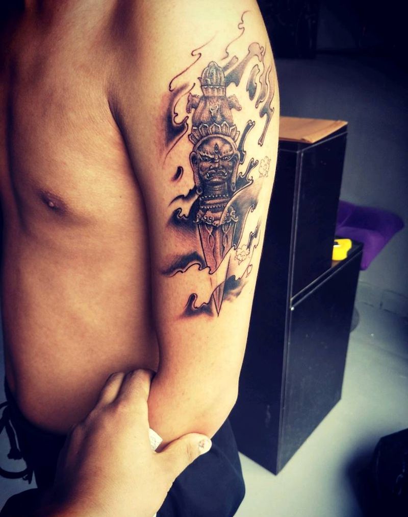 降魔杵纹身图片_手臂新传统纹身图案