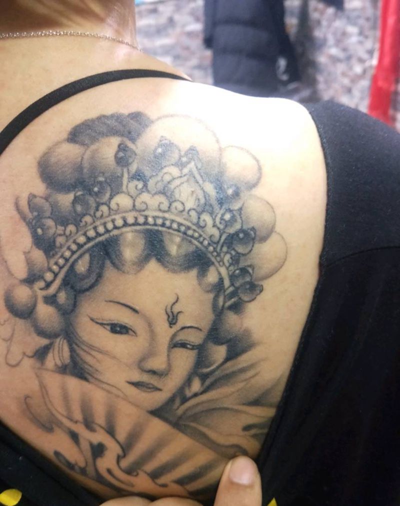 当前位置: 首页 >内蒙古乌兰察布市纹身店-匠一刺青纹身图案>花旦纹身图片_背部老传统纹身图案