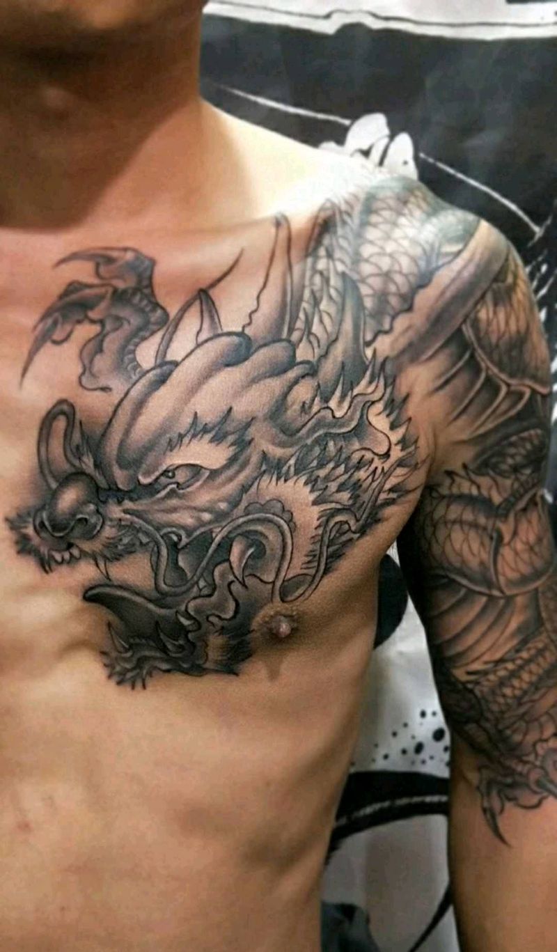 过肩龙纹身图片_胸部纹身图案