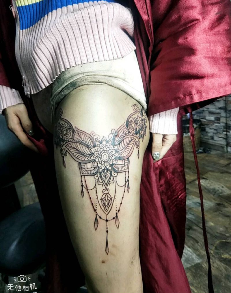 • T网红王老大花腿龙纹身图片_腿部新传统纹身图案