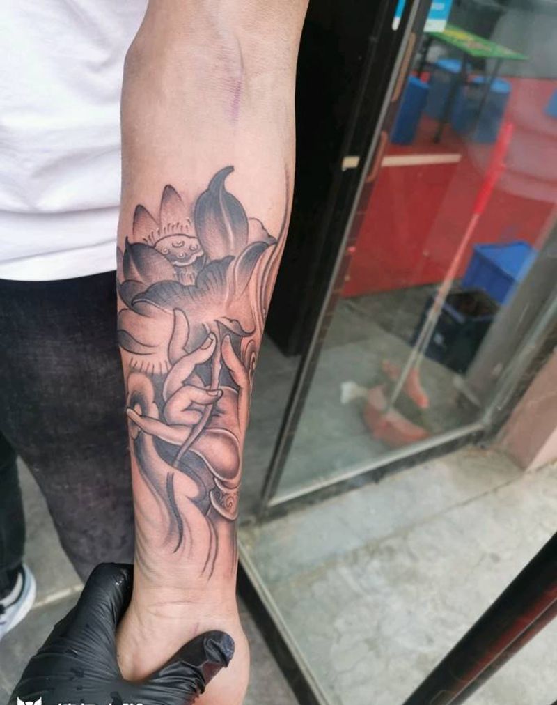 当前位置: 首页 >内蒙古乌兰察布市纹身店-匠一刺青纹身图案>荷花,纹身图片_手臂新传统纹身图案